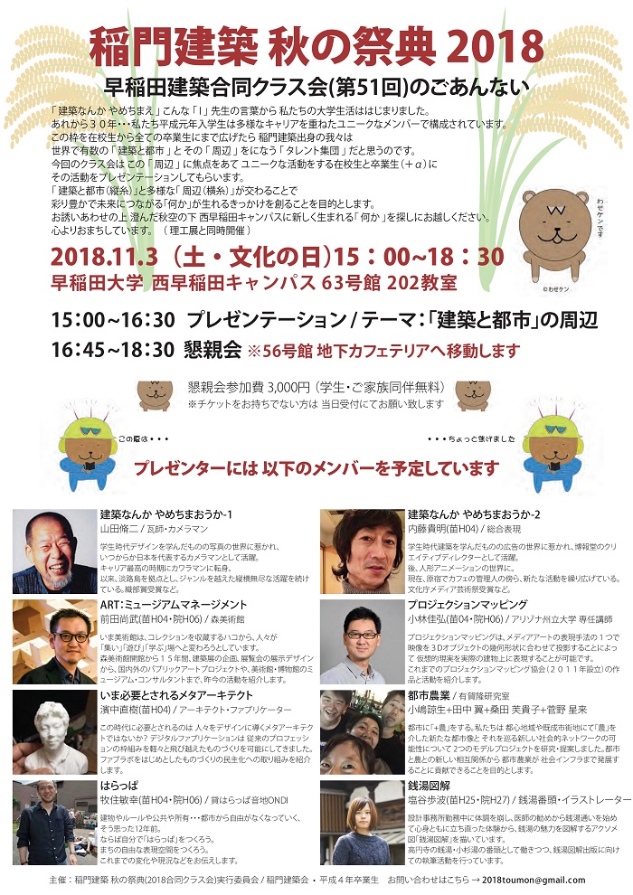 早稲田建築合同クラス会2018 開催のご案内